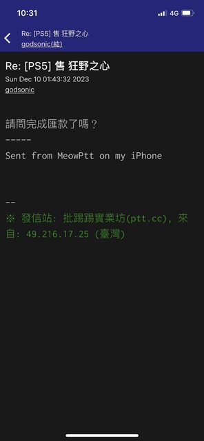 → a147asdf258: 等,他真的要匯款時總會開信看到有新 1.200.245.222 12/13 13:28