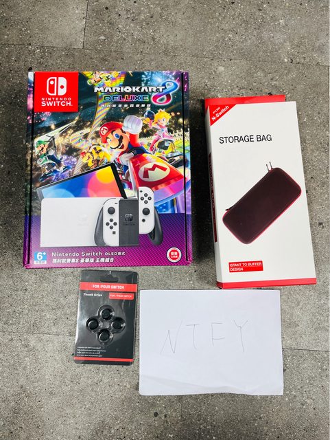 ★【物品名稱】: Nintendo Switch OLED 白色主機 附便攜包 搖桿帽