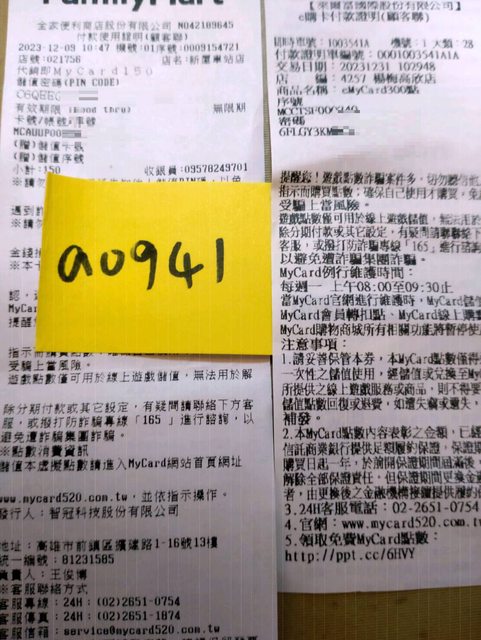 ★【物品名稱】:MyCard點數 300點/150點