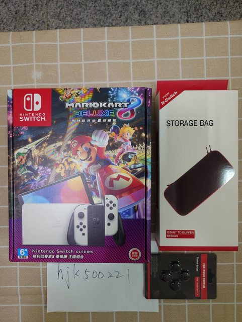 1.全新Switch 瑪利歐賽車8豪華版 OLED主機同捆組(附圖片內搖桿蘑菇頭、主機收納包
