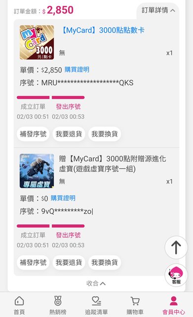 標題[PC ] 售 MyCard點數3000點 87折