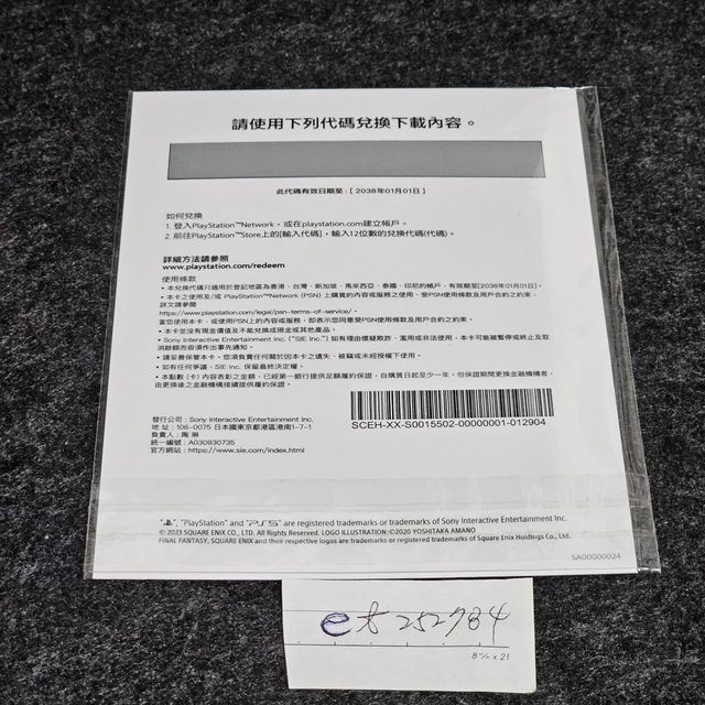 ★【物品名稱】:太空戰士16 數位版序號