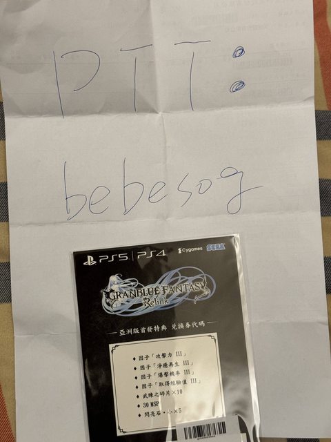 標題[PS5 ] 售 碧藍幻想 relink 特典序號