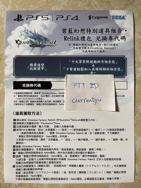 標題[PS5] 售 碧藍幻想 relink特別道具序號