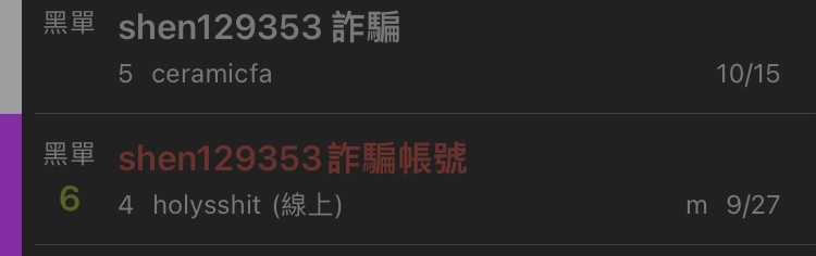 推 a147asdf258: 9月底就有人發文黑單文了,也不少人 42.70.237.90 10/15 16:19