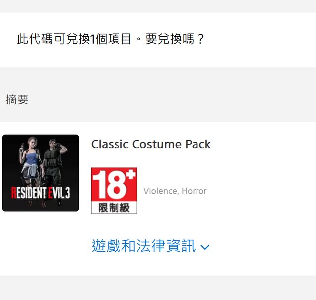 惡靈古堡3特典未使用(期限至2025年4月)