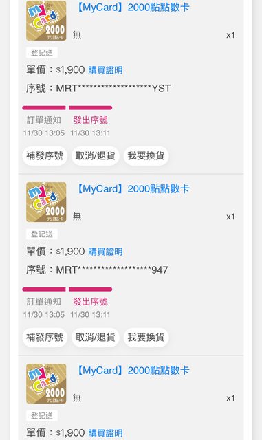 標題[PC] 售 Mycard點數 2000點*3 88折