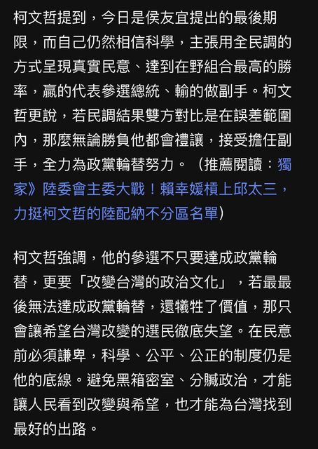 → patrol: 柯學魔法民調膨脹7%和11%,偏差遠高於6% 219.85.7.41 11/25 23:41