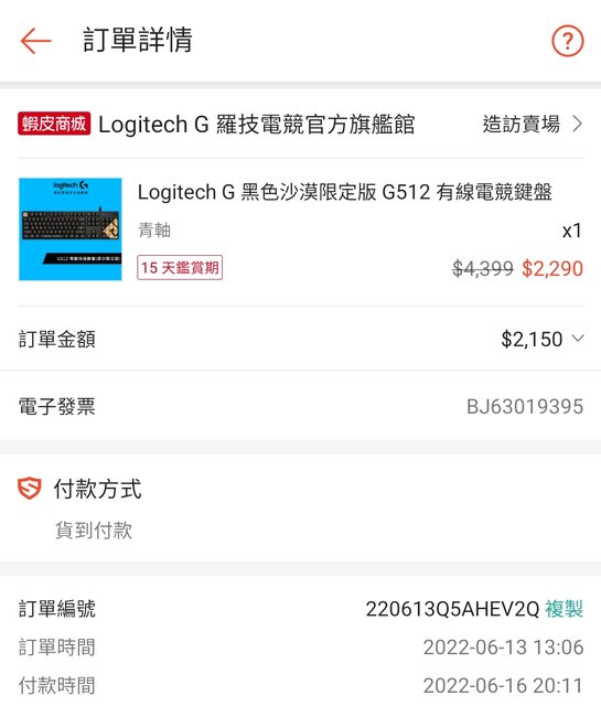 1.2022年6月13日在蝦皮購入