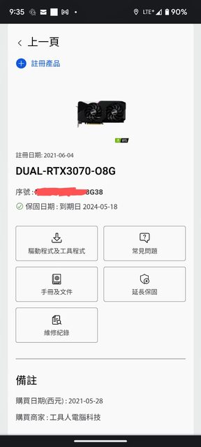 2.有註冊,但發票遺失,保固自出廠日2021四月起算。