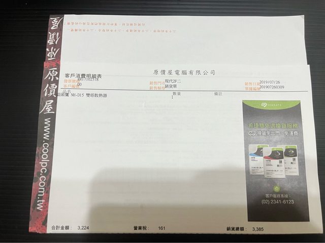 3. 2019/7 購入,無發票,原廠10年保