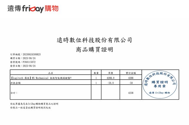 2023/06/24在friday購物購買4238元