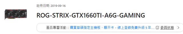 ◎硬體型號: ROG-STRIX-GTX1660TI-A6G-GAMING