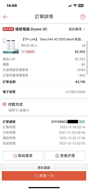 ◎硬體型號: TP-Link Deco M4 兩台