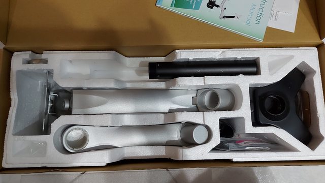 2. 螢幕支架,有使用痕跡,支柱上看得出有鎖過的痕跡,配件中的內六角板手遺失,202