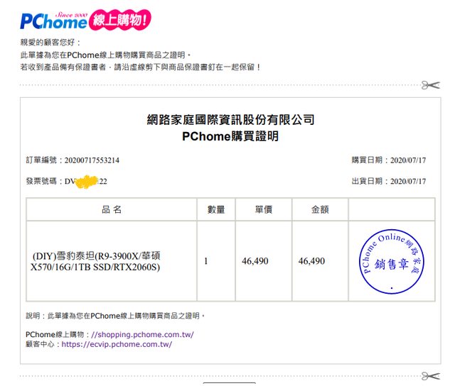 2020年7月在PCHOME買的DIY套裝機