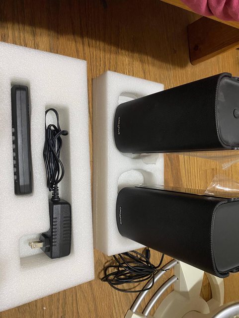 兩件式喇叭、電源線、遙控器