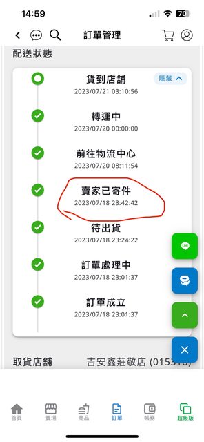 23:42確定沒其他人下單出門去全家寄出 https://i.imgur.com/EsiiLIc.jpg