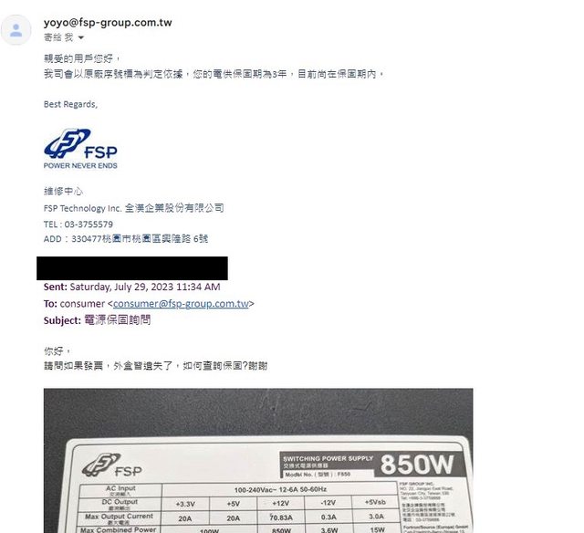 3.FSP 全漢 F850 (ATX3.0) 80 Plus 銅牌