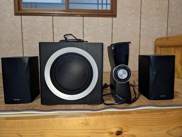 當初購買時,喇叭接筆電,筆電再接電視螢幕。為了看動畫、電影時使用,但後續沒什麼