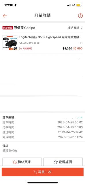滑鼠今年5/1購自蝦皮原價屋