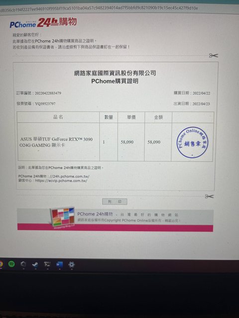 2.2022/04/22購於PChome24h, 已補注冊延長保固,保固到2026/04/22