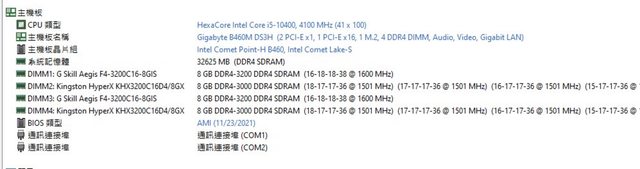 1. 技嘉 B460M DS3H 主機板