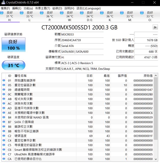 ◎硬體型號:MX500 2TB