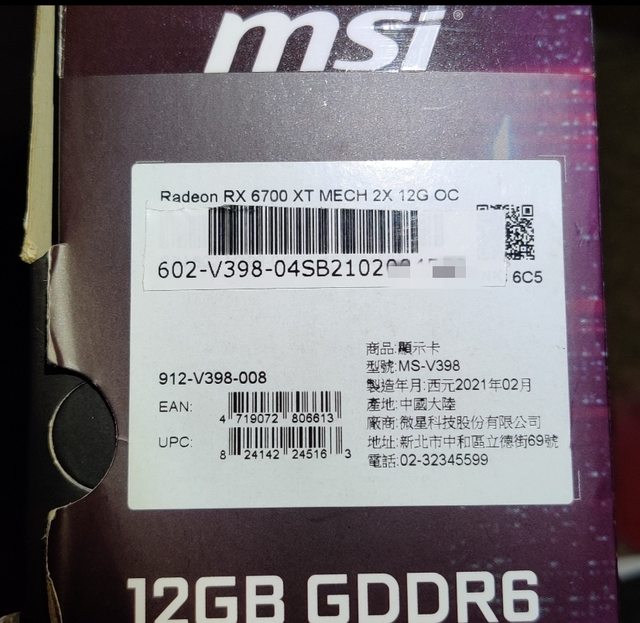 [賣/全國/皆可] MSI RX6700XT MECH 2X OC顯卡