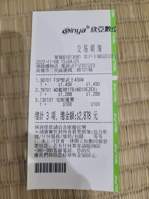 購買日 2022/11/08,保固5年
