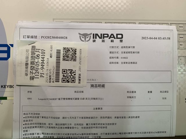 1. 2023/5/16硬派購入,保固至2024/5/16