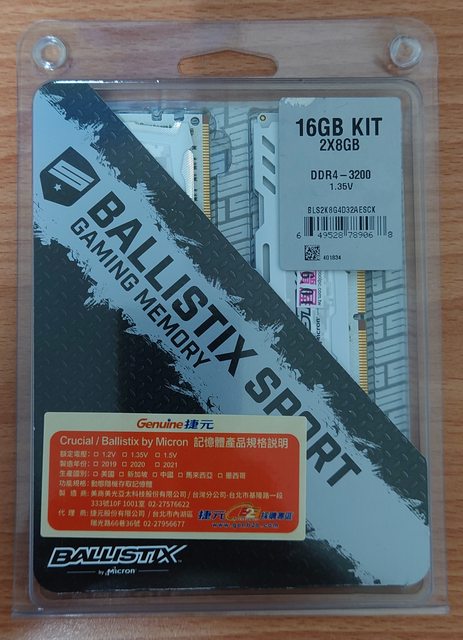 3. 美光 Ballistiix Sport DDR4-3200 8Gx2 白色