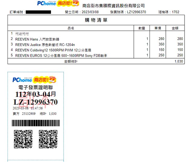 4. 2023/03/08購於匯鎌PChome商店街,僅開箱,膠膜未撕,附PWM分接線,無保,不拆賣