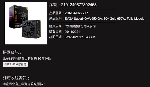 3.模組電源,保固到9/11/2031。
