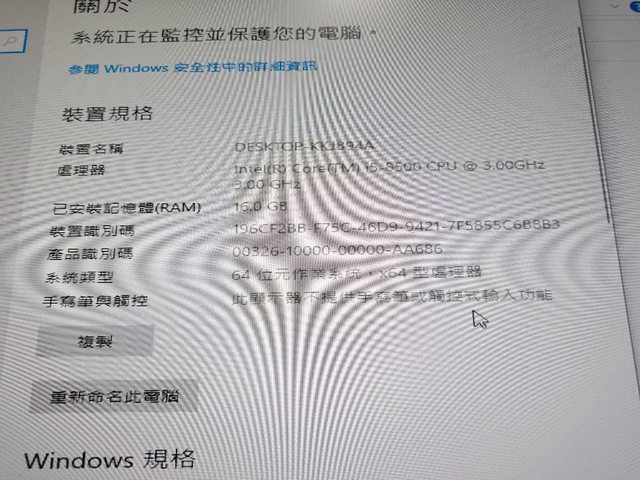 CPU:intel i5 8500 含原廠風扇