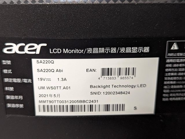 標題[賣/新竹/皆可] ACER SA220Q