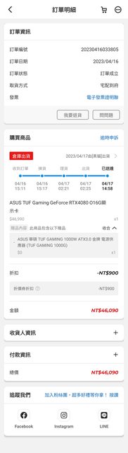 pchome 2023.04.17購入顯示卡+電源tuf1000w