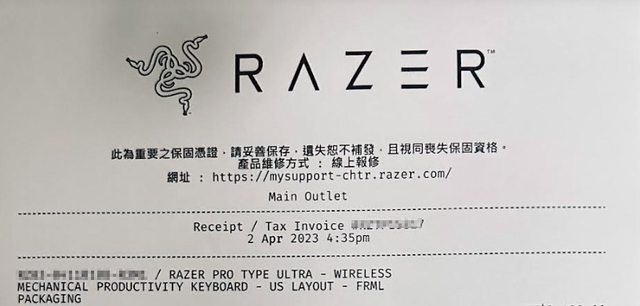 ◎硬體型號: Razer Pro Type Ultra 英刻