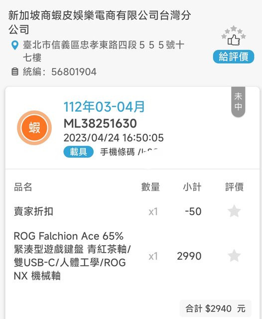 標題[賣/雙北/皆可] ROG Falchion Ace 65%有線,白色
