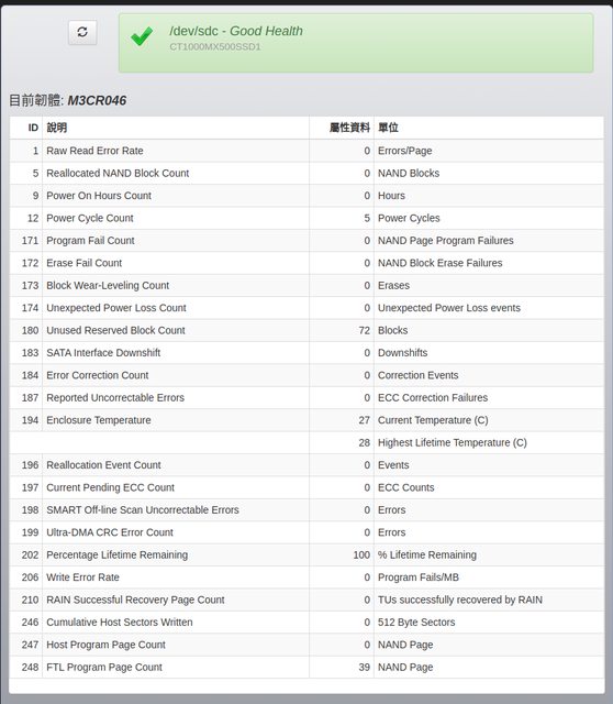 只有接外接盒用美光 Storage Executive 軟體確認 SMART、如後面附圖