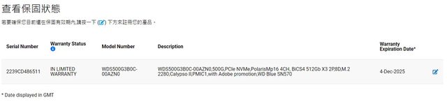 ◎硬體型號: WD SN570 500gb
