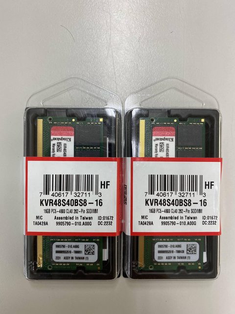 ◎硬體型號:金士頓 DDR5 4800 16G 筆記型記憶體 (KVR48S40BS8-16)*2