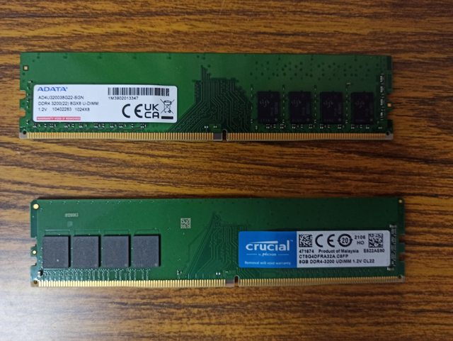 1. DDR4-3200 美光 8G + 威剛 8G