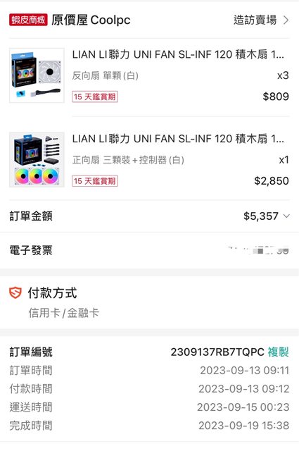 ◎硬體型號: 1.Lian li 3代積木扇 3顆裝(含控制器)白色