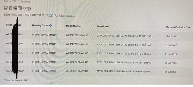 WD 4Tb 硬碟上網查詢保固至2025/7/21