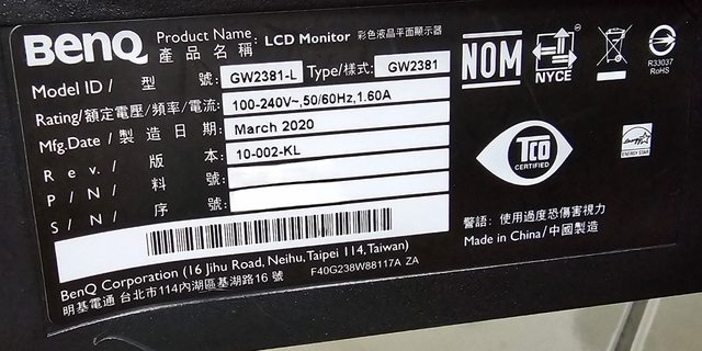 ◎硬體型號: BENQ GW 2381-L