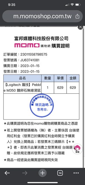 ◎硬體型號: 羅技M350無線滑鼠 石墨黑