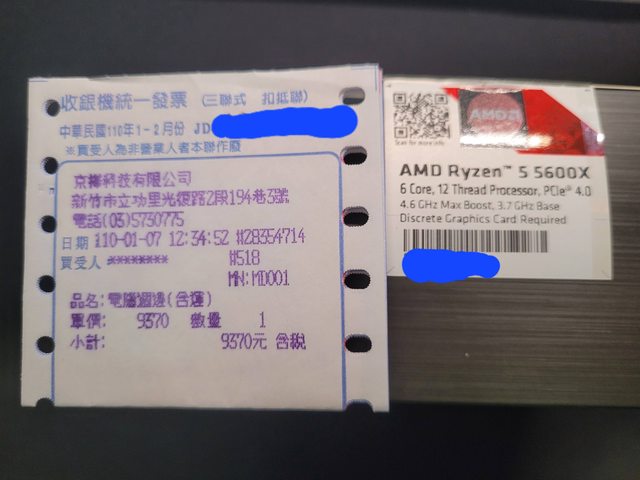 1.2021/1/7 購入自京樺科技,威建公司貨,保固至2024/1/7,有盒裝和原廠散熱器