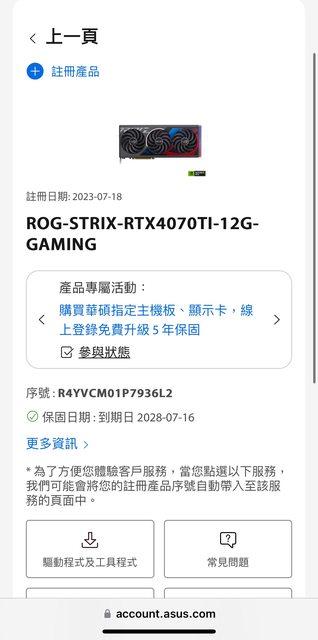 8月初因為破圖有送回原廠RMA更換顯卡,所以卡跟盒子序號不一樣....