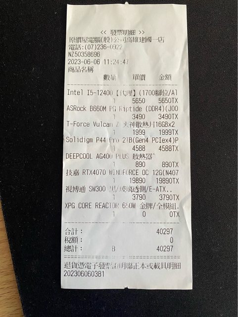 標題[賣/高雄/皆可]I5-12400/技嘉4070 全套主機